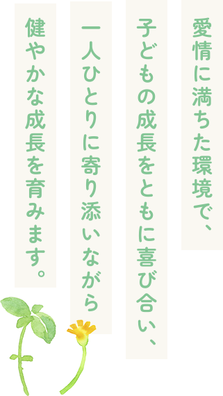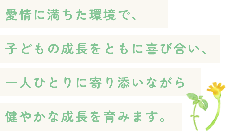 少人数制ならではの家庭的な雰囲気のもとで、子どもの思いを受け止め、豊かな人間性を育みます。