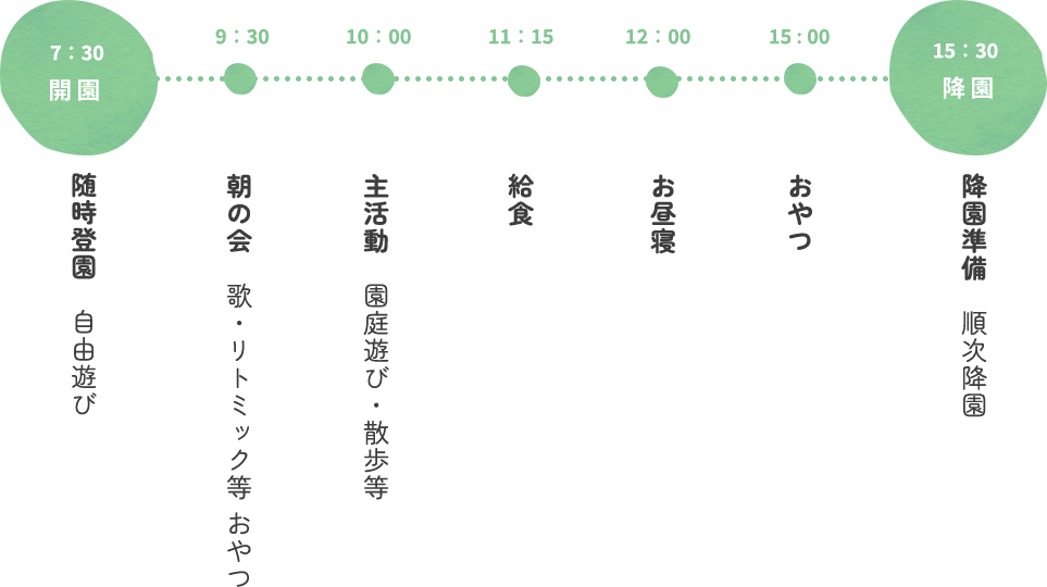 11時間保育 ( 例 7:30 - 18:30 ) |